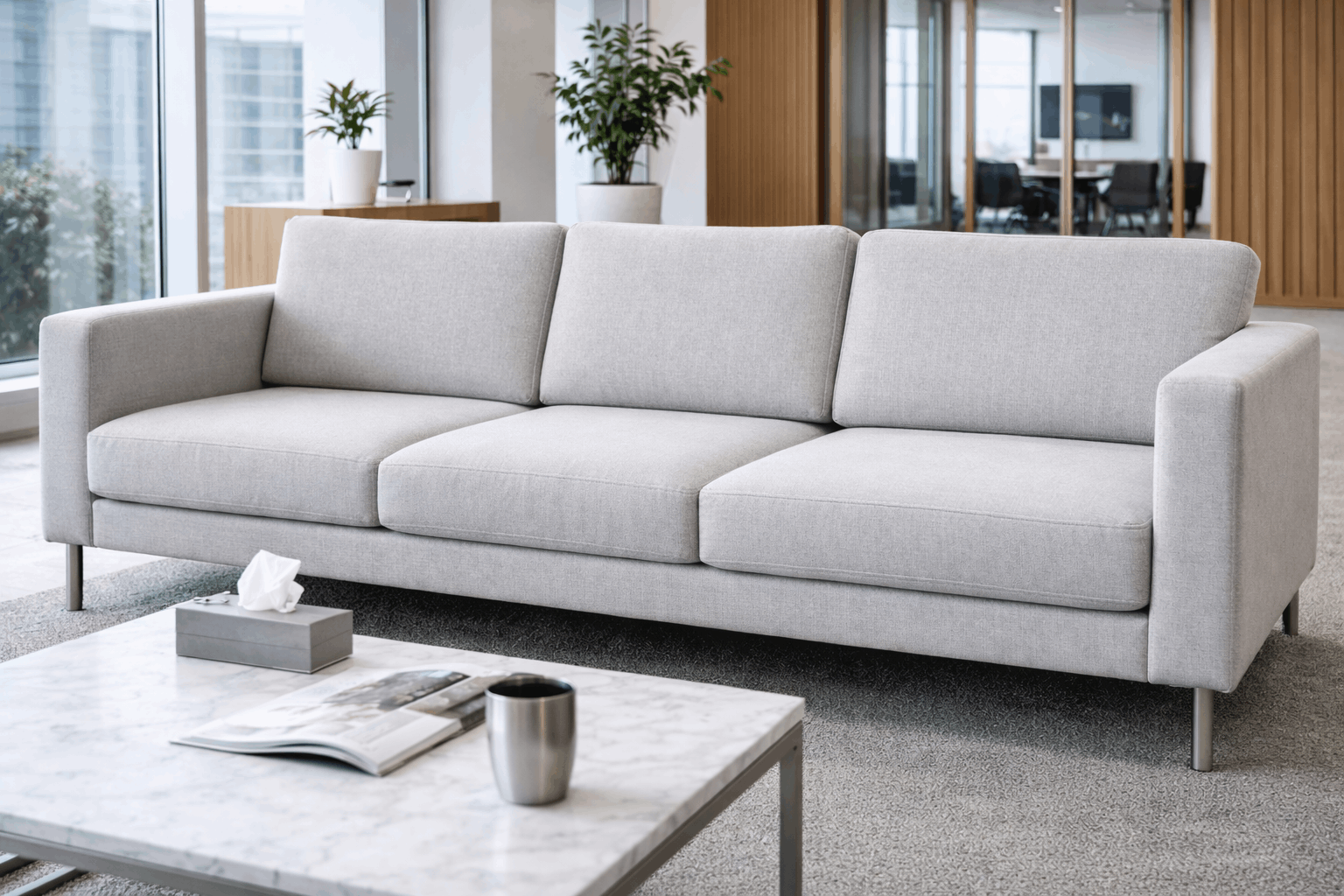 במשרד אנשים שמים לב לפרטים: כיסאות בחדר ישיבות, ספה בחדר המתנה, ריפוד בלובי.